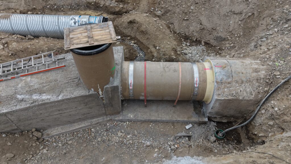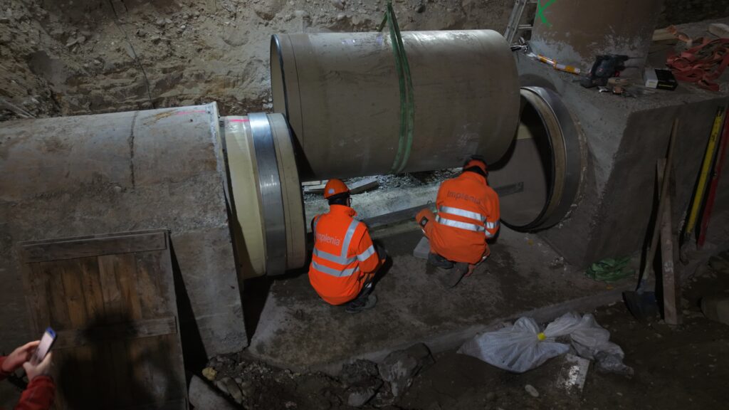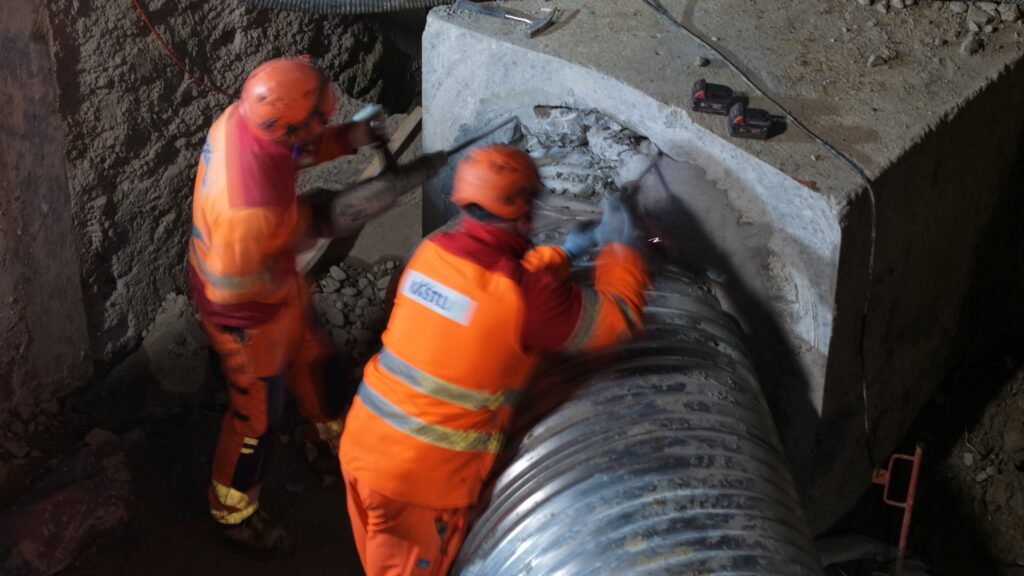 Da während der Arbeiten weiterhin Abwasser abgeleitet werden musste, wurde vorgängig an beiden Anschlussstellen ein provisorisches Rohrsystem (Bypass aus Wellstahlrohren) gebaut. Der kurz nach Mitternacht bis in die frühen Morgenstunden gebaute Zusammenschluss verlief erfolgreich, nicht zuletzt wegen der in dieser Zeit reduzierten Abflussmengen.